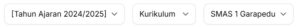 2. Pilih parameter filter sesuai kebutuhan: Tahun Ajaran, Semester, atau Kelas.