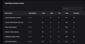 Hasil yang muncul berisi ringkasan per siswa, biasanya memuat: