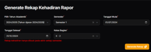 Setelah semua data diisi, tekan tombol “Generate Rekap”. Sistem akan memproses dan menampilkan hasil rekap untuk periode dan kelas yang dipilih.